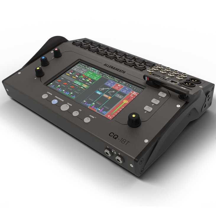 CQ18T är en kompakt digitalmixer från Allen & Heath med 18 analoga ingångar, 8 analoga utgångar, lättanvänd 7" touchskärm, Wi-Fi, inbyggda effekter, Bluetooth m.m.