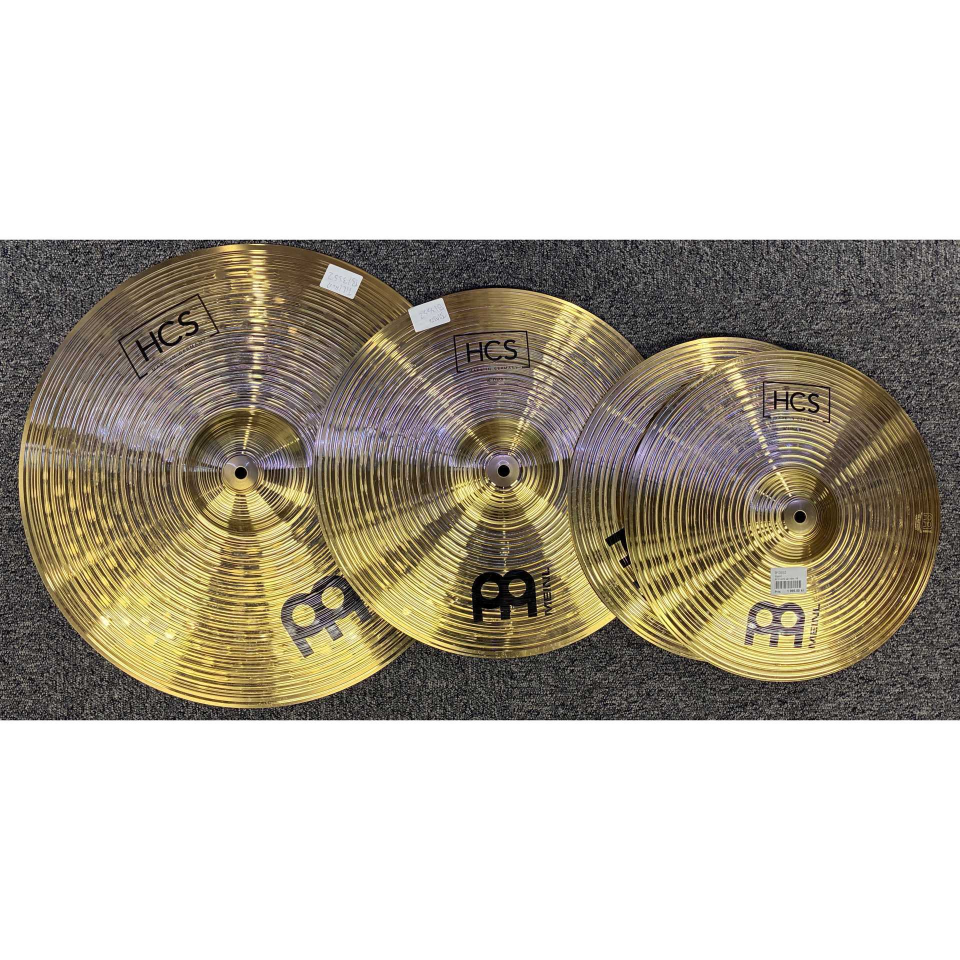 Begagnat Meinl HCS set med 20" ride, 16" crash och 14" hihat i fint skick.