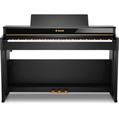 Elegant och minimalistiskt digitalpiano från Donner med 88 halvvägda tangenter. Undervisningsfunktion och ackompanjemang. Inkluderar pedal med sustain, dämpare och sostenuto. Inbyggda högtalare