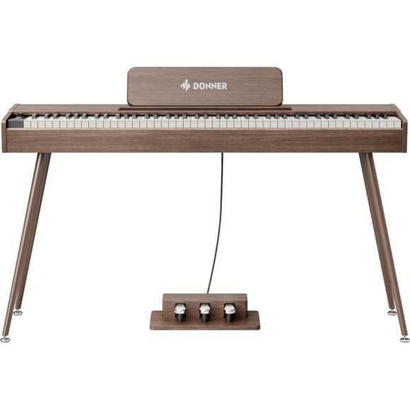 Donner DHP-200 Pro i valnöt är ett elegant elpiano som kombinerar ett tidlöst formspråk med moderna funktioner för hem och undervisning. Den varma valnötsfinishen ger pianot ett exklusivt och harmoniskt uttryck som passar lika bra i traditionella som moderna miljöer. Instrumentet upplevs som en naturlig del av inredningen och bjuder in till dagligt spel.