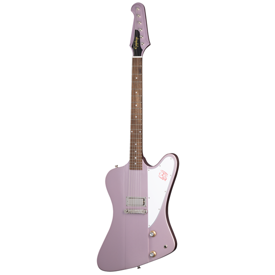 Nya Epiphone Firebird I, klassikern från 1963, i serien Inspired By Gibson Custom Shop. Kropp i mahogny, 9-lagers genomgående hals i mahogny och valnöt, greppbräda i Indiann lauerl samt förnicklad hardware. Mikrofoner: 1st Gibson USA Firebird Mini Humbucker med Alnico 5 Magnets. Färg: Heather Poly. Levereras med hardcase.