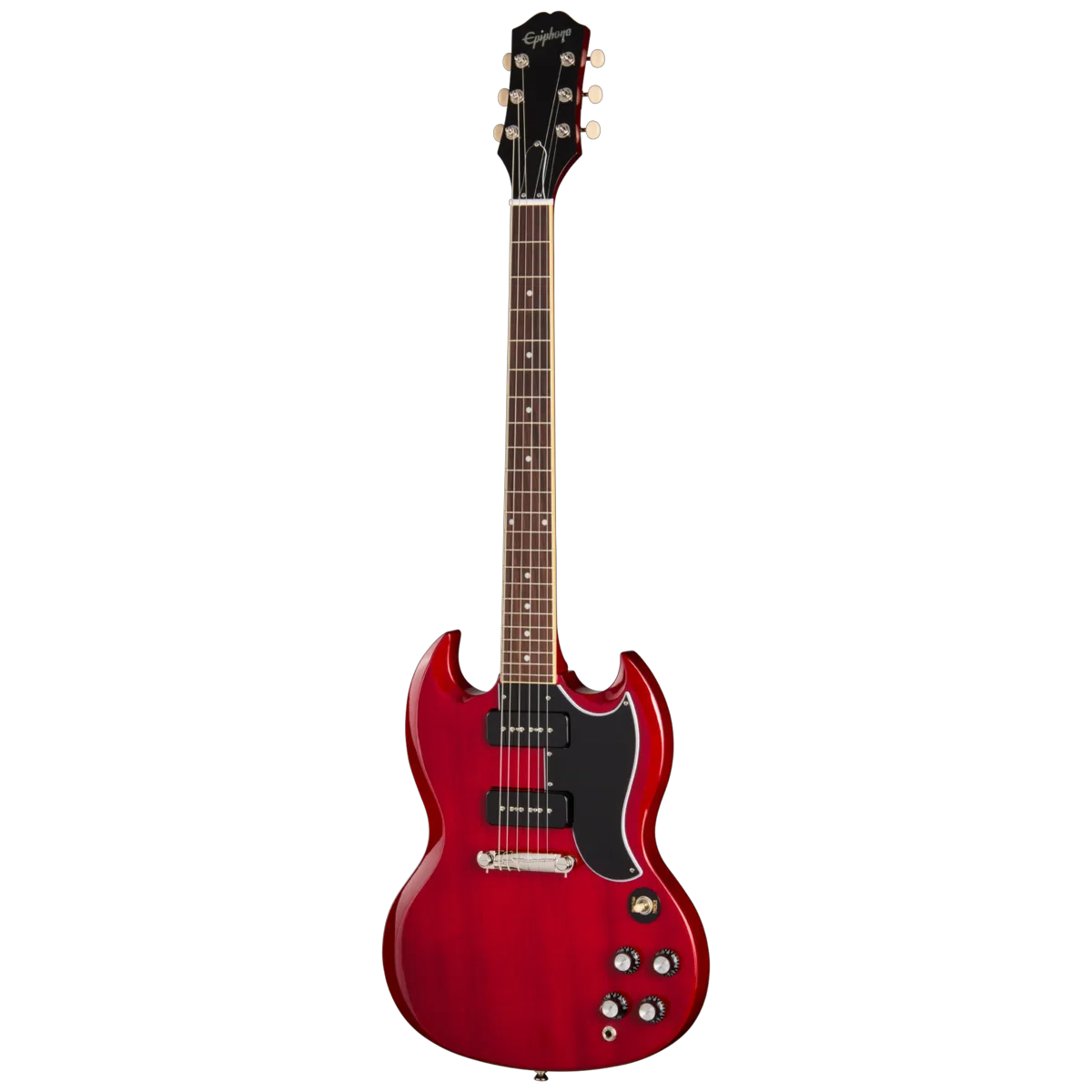 SG solid body elgitarr från Epiphone med, kropp i mahogny, dubbla P-90 PRO mikrofoner, Lightning Bar wraparound stall samt SlimTaper-hals. Inklusive gigbag.