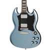 Epiphone SG Standard i serien Inspired By Gibson. Kropp i mahogny, hals i mahogny, greppbräda i lagerträ samt förnicklad hardware. Mikrofoner: 1st ProBucker-2™ och 1st ProBucker-3™. Färg: Pelham Blue. Elgitarren levereras med en premium Epiphone gigbag.
