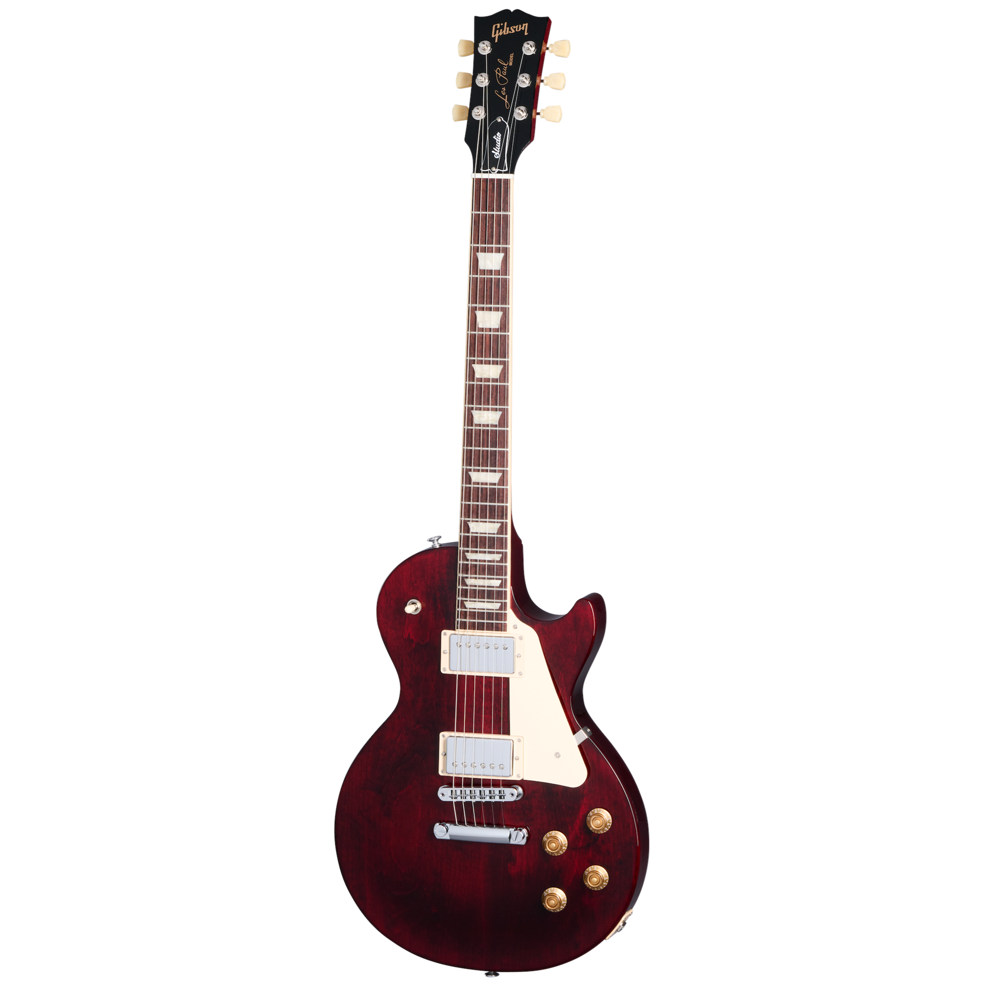 Les Paul Studio i Gibsons Modern-serie, här i färgen Wine red. Gitarren har en kropp och hals i mahogny, topp i lönn, greppbräda i Indian rosewood samt kromad hardware. Mikrofoner: 2st Burstbucker Pro. Levereras med ett Gibson Soft Shell Case samt Accessory Kit.