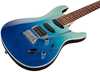 SA modellen är som ett mellanting mellan en S modell och en normaltjock gitarr med arched top (skålad framsida). En rundare och mjukare skuren gitarr än den kantigare RG modellen.Med tjockare och rundare halsar, tvåpunkts icke-låsbara stall och True-duo humbucker i stallet med singlecoil mickar i hals och mitt är den en gitarr som pratar ett mer traditionellt språk än mycket annan i Ibanez sortiment.
