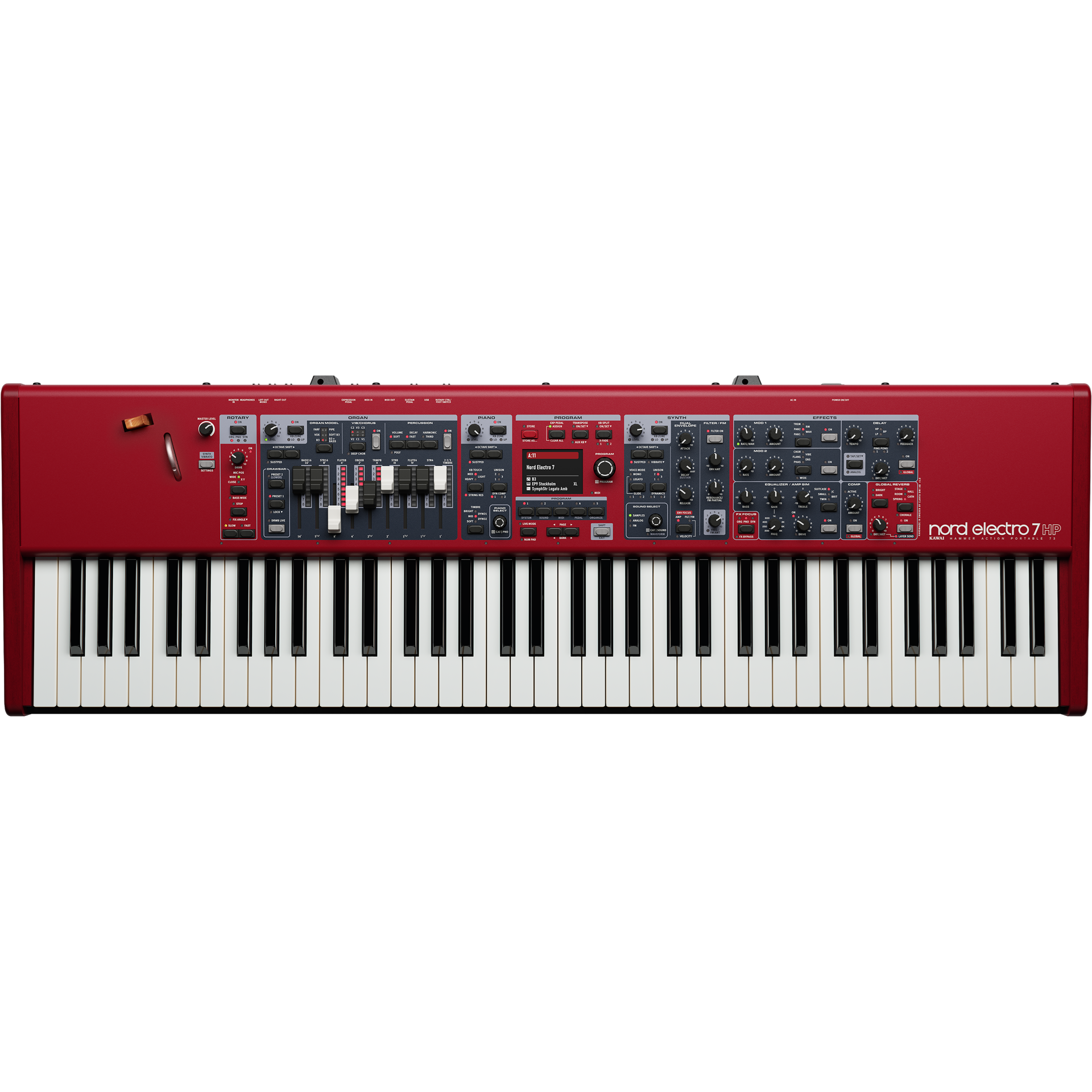 NORD ELECTRO 7 !Nord Electro 7 tar Electro-serien till nästa nivå med en helt ny Synth-sektion, dedikerade effekter per sektion och en uppdaterad paneldesign med stor högupplöst färgdisplay. Med Nords senaste pianofunktioner samt orgel- och rotary-emulering från Nord Organ 3 erbjuder Electro 7 maximal flexibilitet i ett lätt, scenredo instrument.