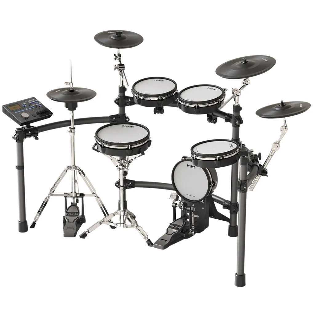 NUX DM-8 är den senaste digitala trumsetet från Nux och flaggskeppet i deras sortiment. Det är konstruerat och designat med nya och innovativa teknologier som ger dig den autentiska känslan av att spela på ett akustiskt trumset.DM-8 har ett robust tripod-system som inte bara är hållbart, utan också lätt att justera och ser fantastiskt ut på scenen! Utrustad med mesh-skinn, en traditionell hi-hat, en oberoende virveltrumma med trepunkts-trigger, en bastrumma med mesh-skinn och plats för dubbelpedal samt en riktigt bra och mångsidig ljudmodul.