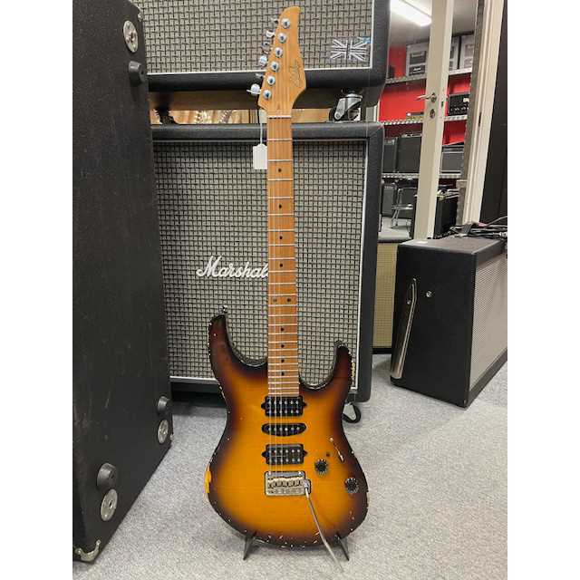 High-end elgitarr från Suhr i modell Modern Anique, lönntopp i 2 tone tobacco finish, (relic). Hals och greppbräda i roasted maple, 24 stainless steel jumboband. Push/pull, blowerswitch. Hsh mick-kombination med SSH Plus (B), ML Standard (M), SSV HB (N). Gitarren är i toppskick och relicad endast från fabrik. Inklusive original hardcase.