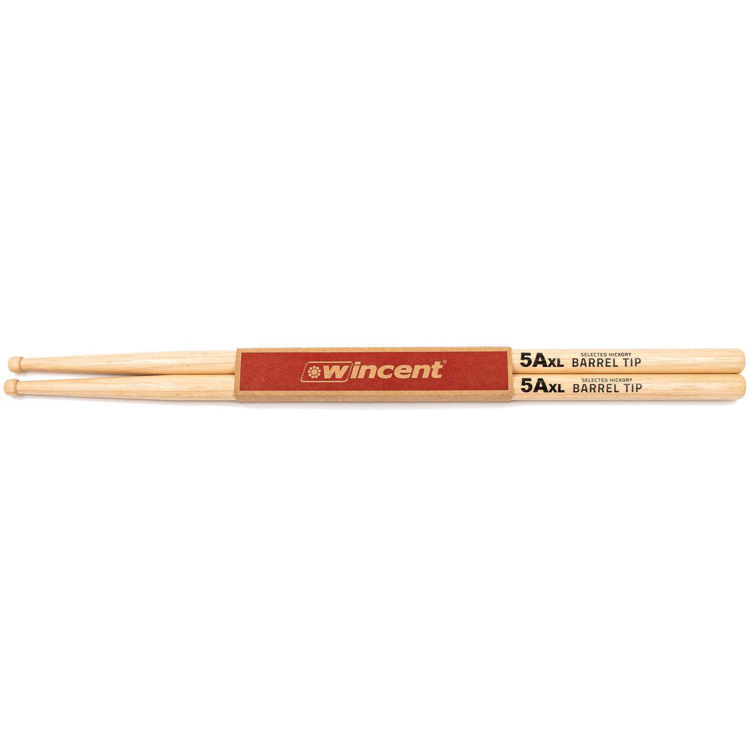 Wincent 5AXL Barrel Tip är en lite längre version av trumstocken 5A i serien Hickory Standard, här dessutom med en tunn-formad trädruva som ger ett mer skimrande cymballjud. Diameter: 14,3 mm. Längd: 420 mm.